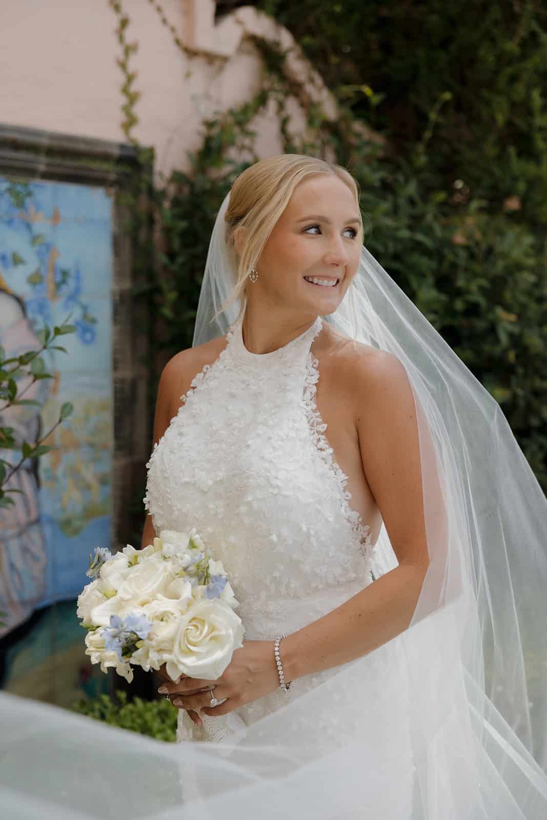 a bride smiling